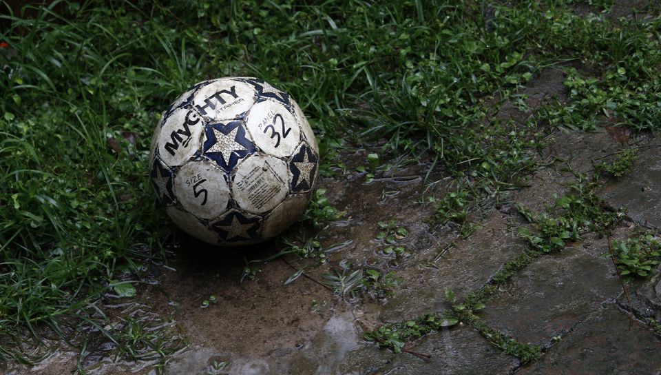 Download 960x544 ball, football, dirt, grass wallpaper, background playstation ps vita