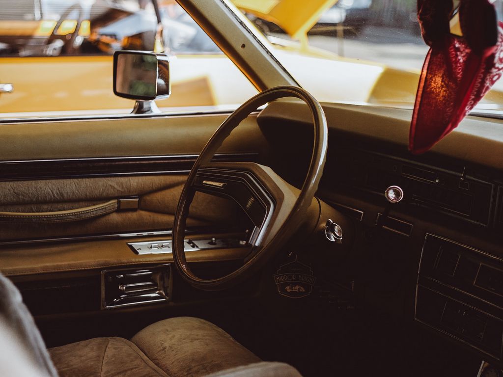 Download 1024x768 car, vintage, salon, interior, steering wheel wallpaper, background standard 4:3