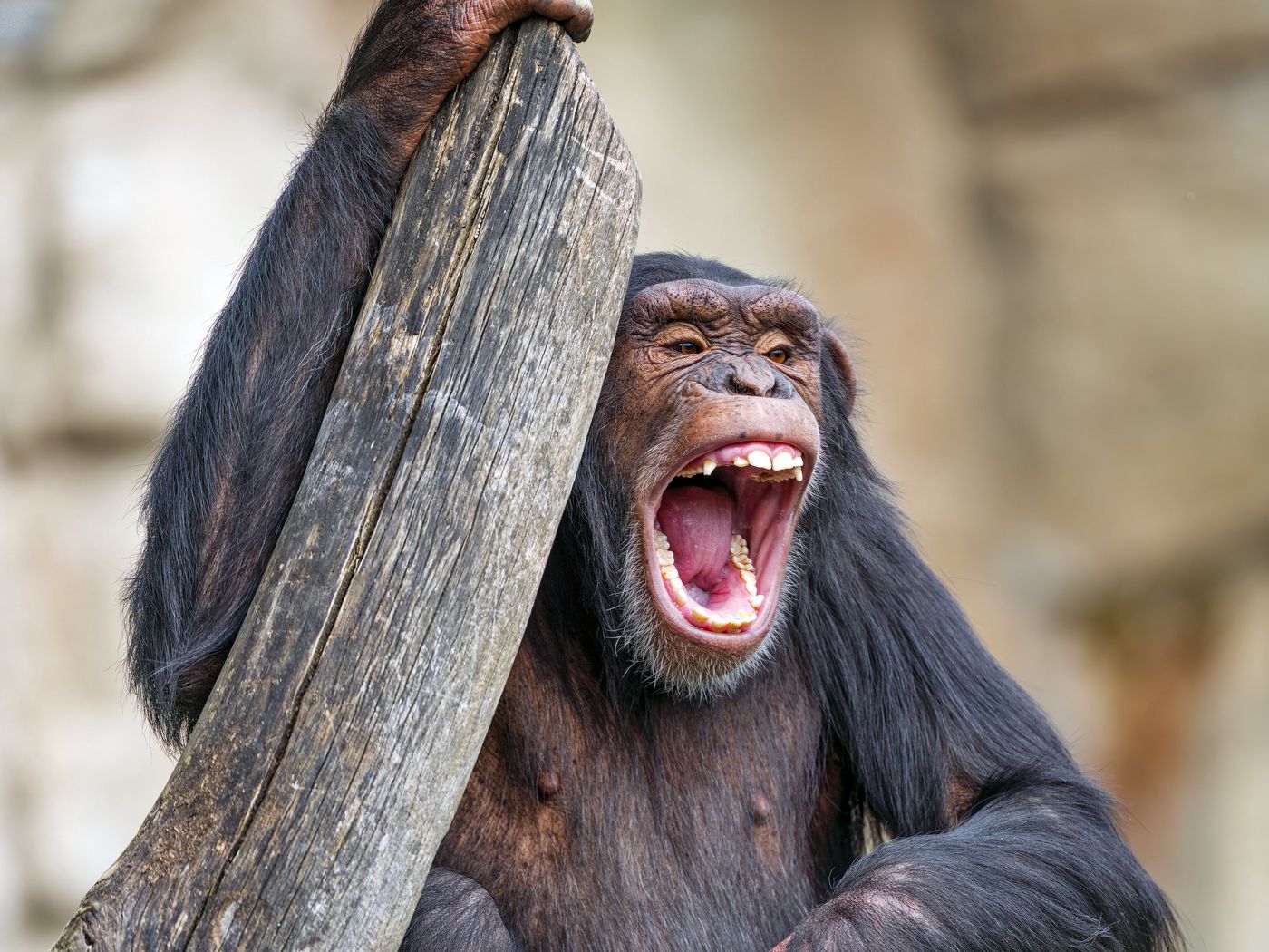 Download 1400x1050 chimpanzee, monkey, animal, branch, nature wallpaper, background standard 4:3