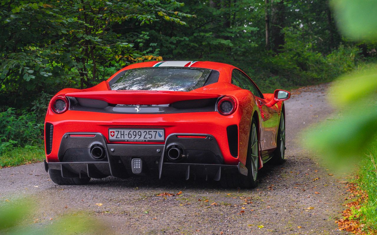 Download 1280x800 ferrari, car, sports car, rear view, red wallpaper, background widescreen 16:10