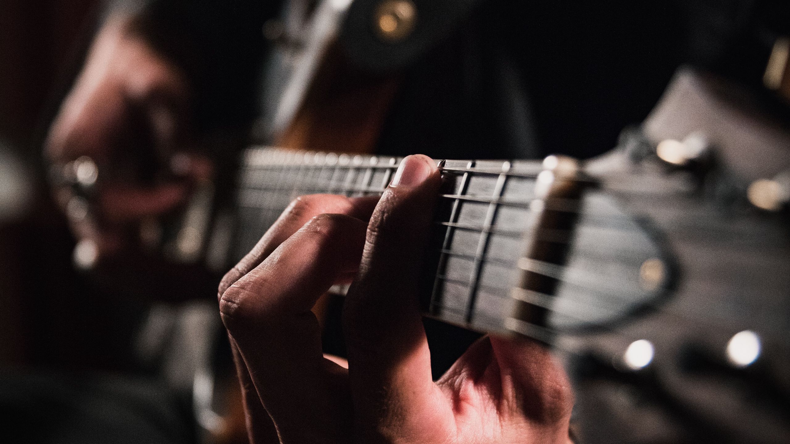 Download 2560x1440 guitar, hands, fingers, guitarist, musician wallpaper, background widescreen 16:9