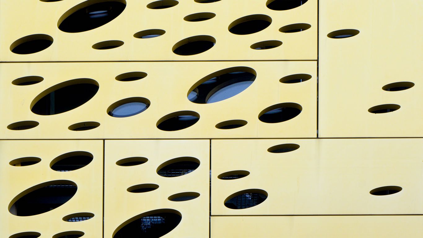 Download 1366x768 holes, panels, architecture, geometry, design, abstraction wallpaper, background tablet, laptop