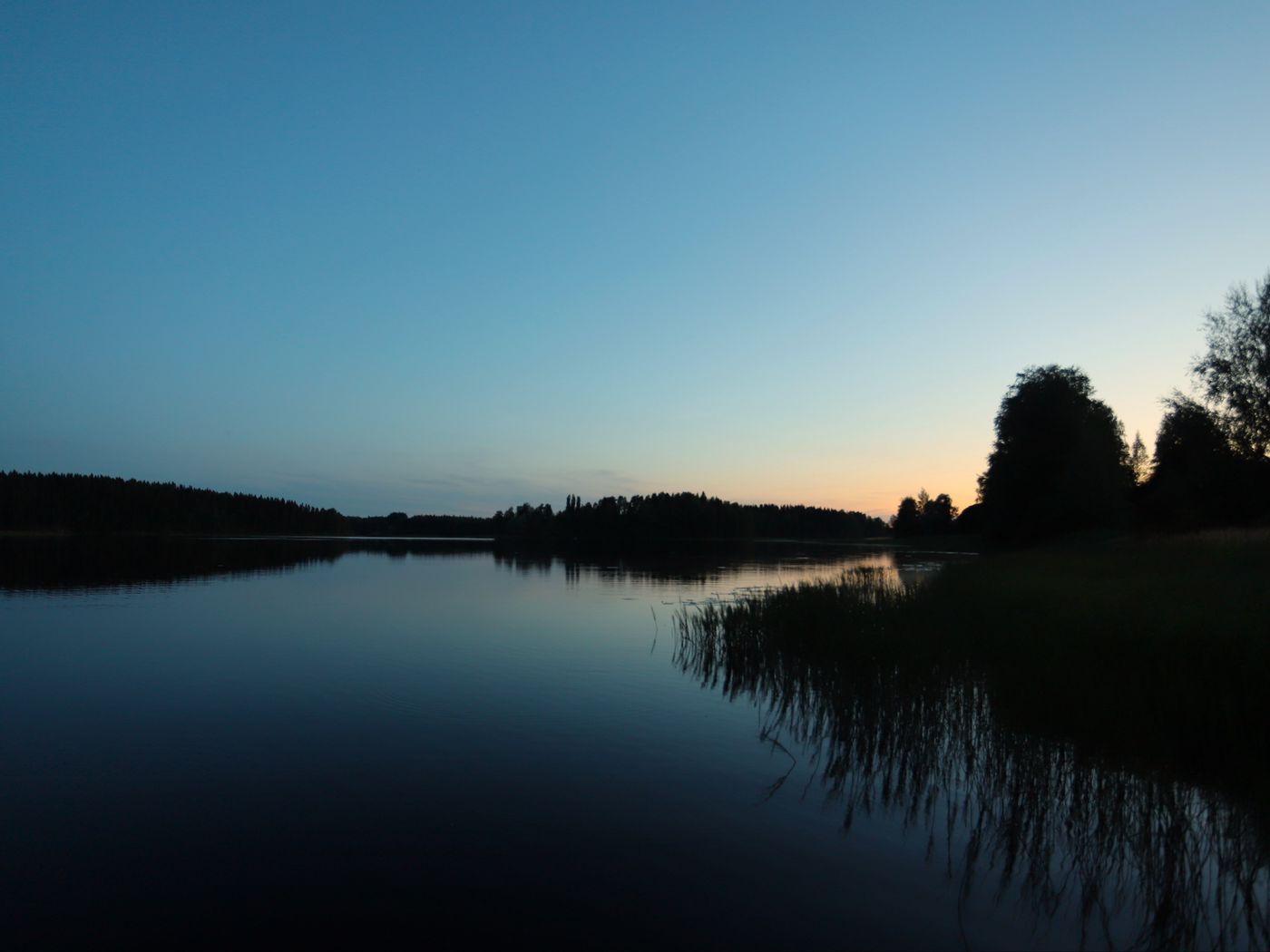 Download 1400x1050 lake, forest, sunset, nature, reflection, water, landscape wallpaper, background standard 4:3