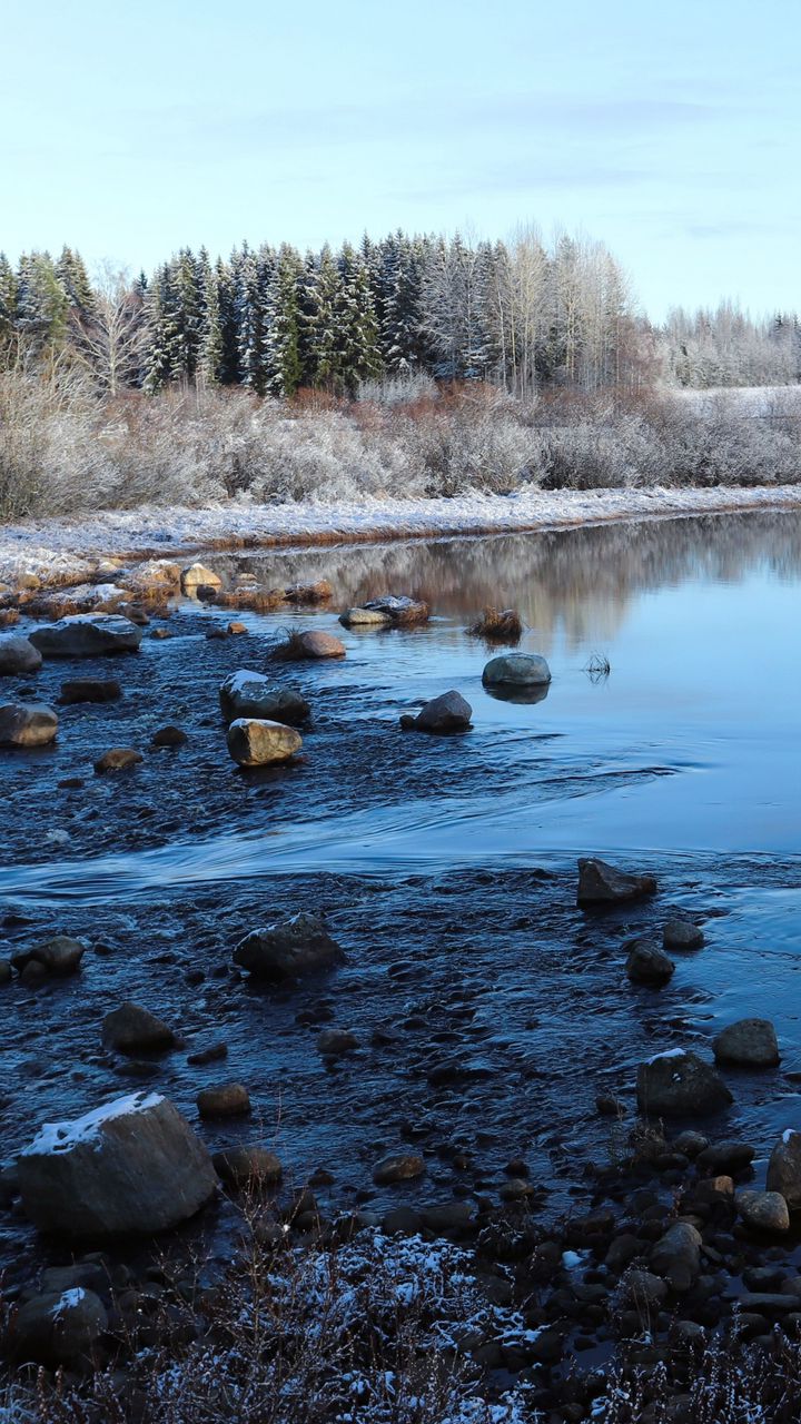 Download 720x1280 lake, water, stones, snow, trees, winter, forest, nature wallpaper, background samsung galaxy mini s3, s5, neo, alpha, sony xperia compact z1, z2, z3, asus zenfone