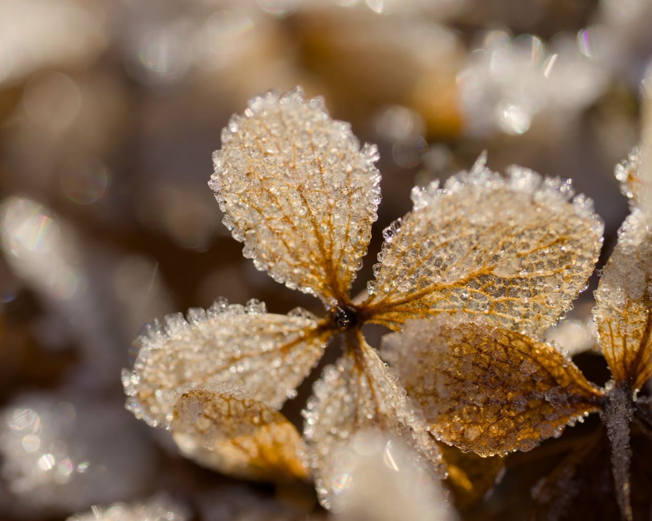 Download 1280x1024 leaves, ice, frost, glare, macro wallpaper, background standard 5:4