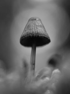 Download 240x320 mushrooms, macro, gray, dark, bw wallpaper, background old mobile, cell phone, smartphone