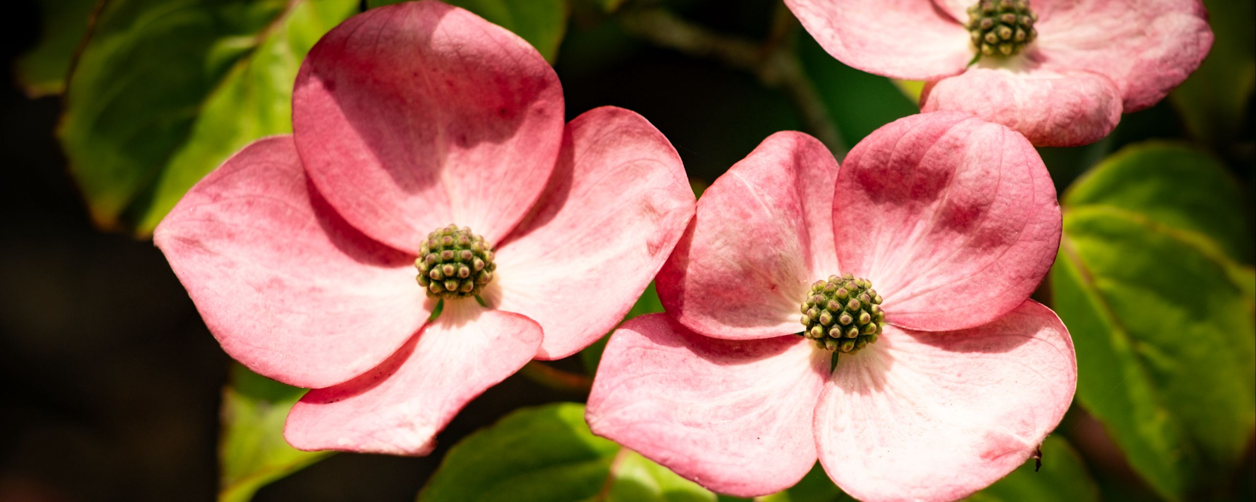 Download 2560x1024 petals, leaves, flowers, pink, green, macro wallpaper, background ultrawide monitor