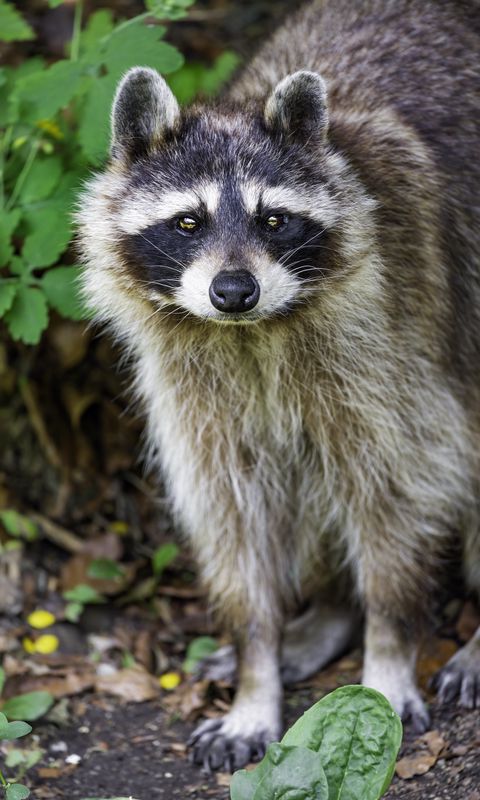 Download 480x800 raccoon, animal, wildlife, leaves wallpaper, background nokia x, x2, xl, 520, 620, 820, samsung galaxy star, ace, asus zenfone 4