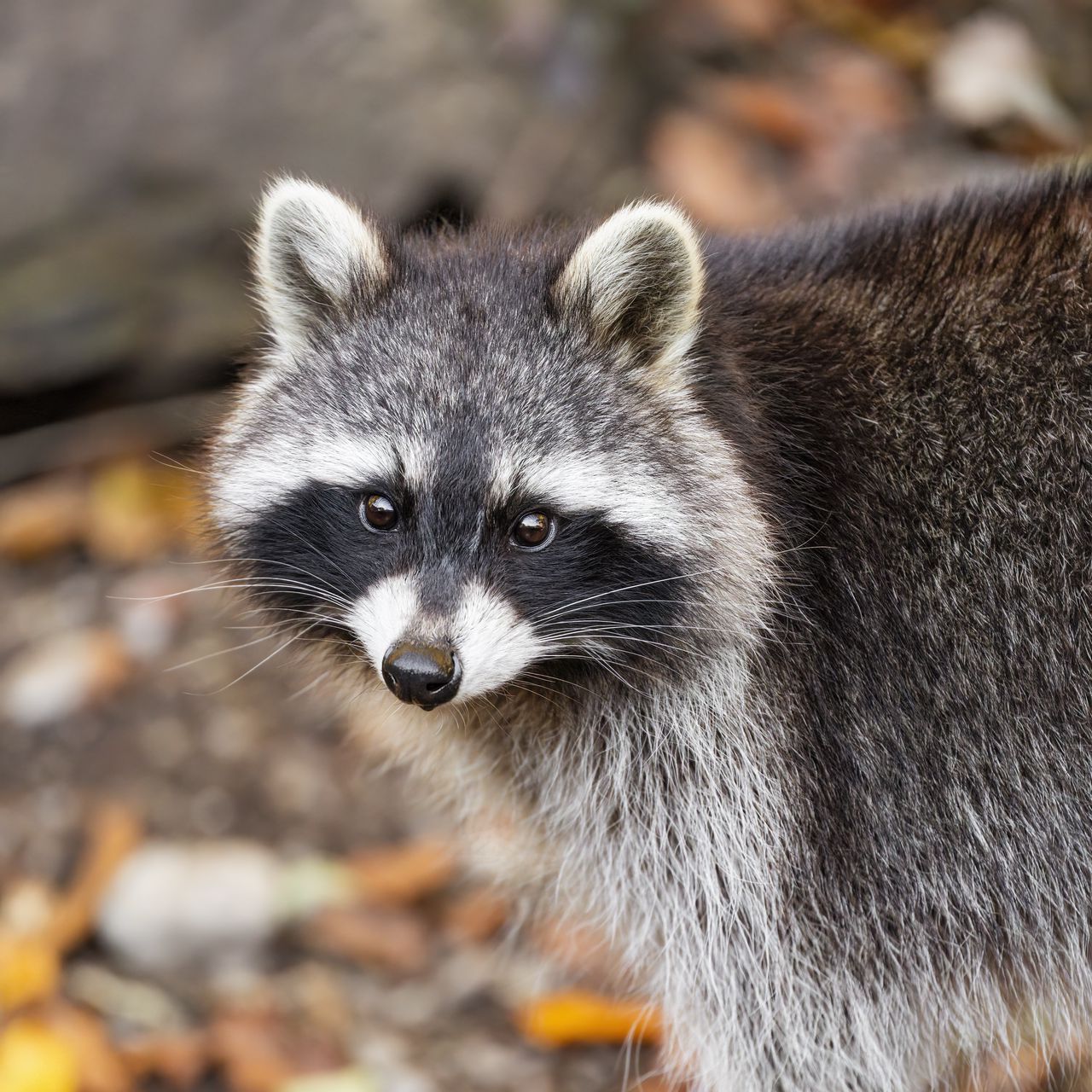 Download 1280x1280 raccoon, autumn, leaves, grey, yellow wallpaper, background ipad, ipad 2, ipad mini for parallax