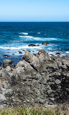 Download 240x400 rocks, coast, sea, water, nature, horizon wallpaper, background nokia asha 311, samsung galaxy 580, omnia, lg kp500