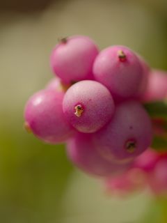 Download 240x320 snowberry, berries, macro, leaves, pink, blur wallpaper, background old mobile, cell phone, smartphone
