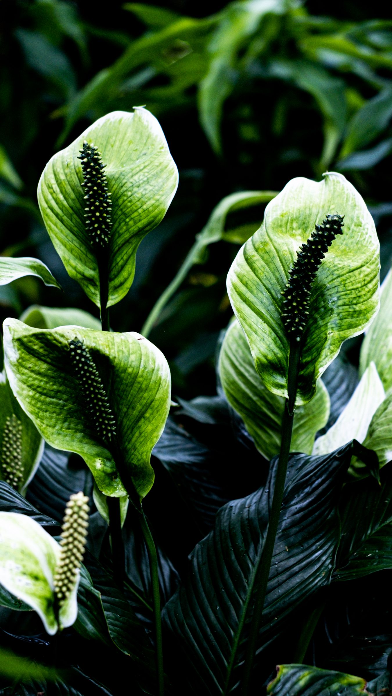 Download 1350x2400 spathiphyllum, leaves, flowers, plant, green, nature wallpaper, background iphone 8+/7+/6s+/6+ for parallax